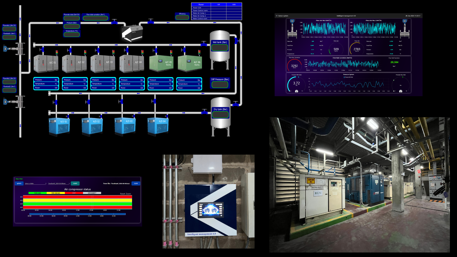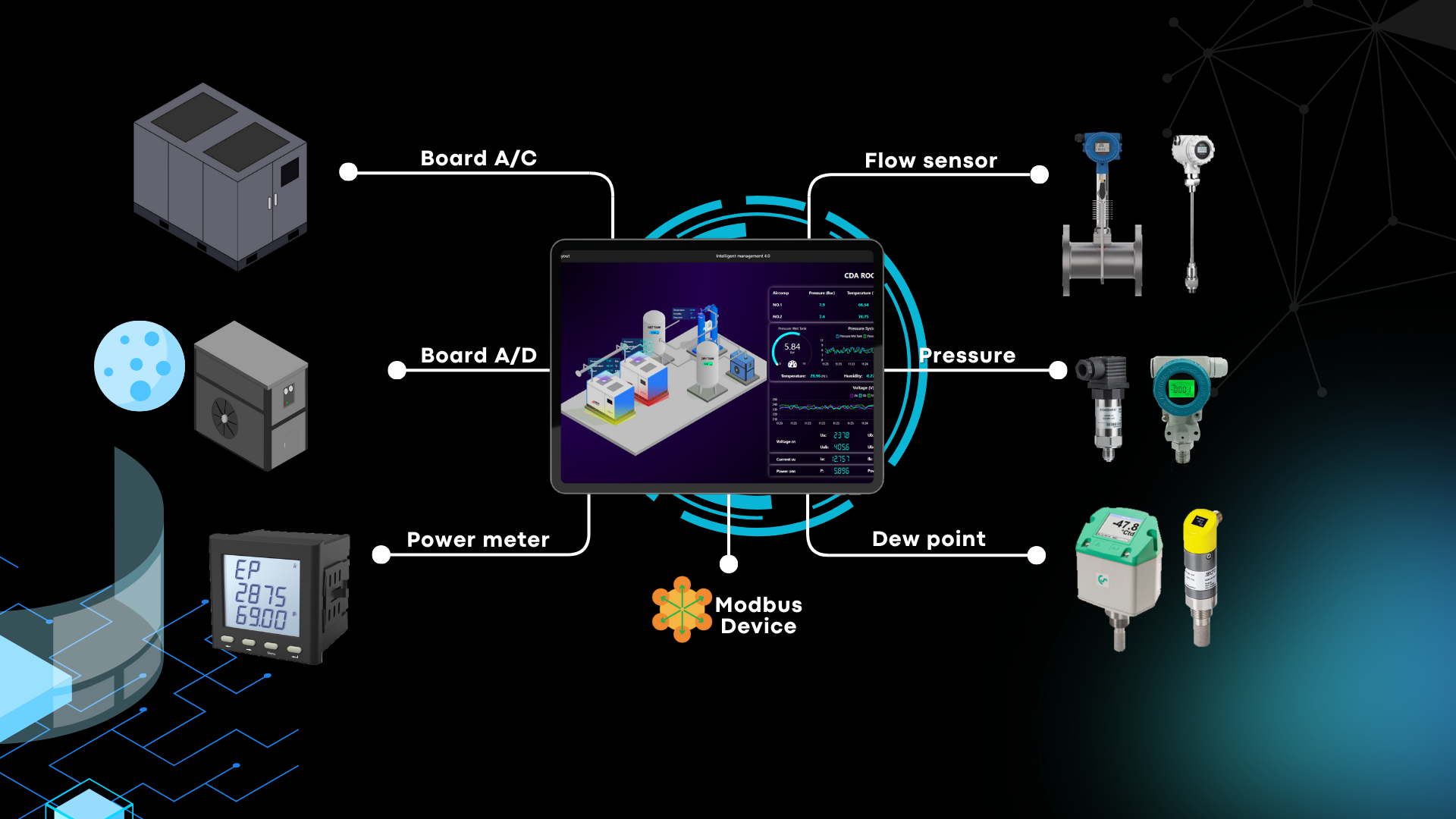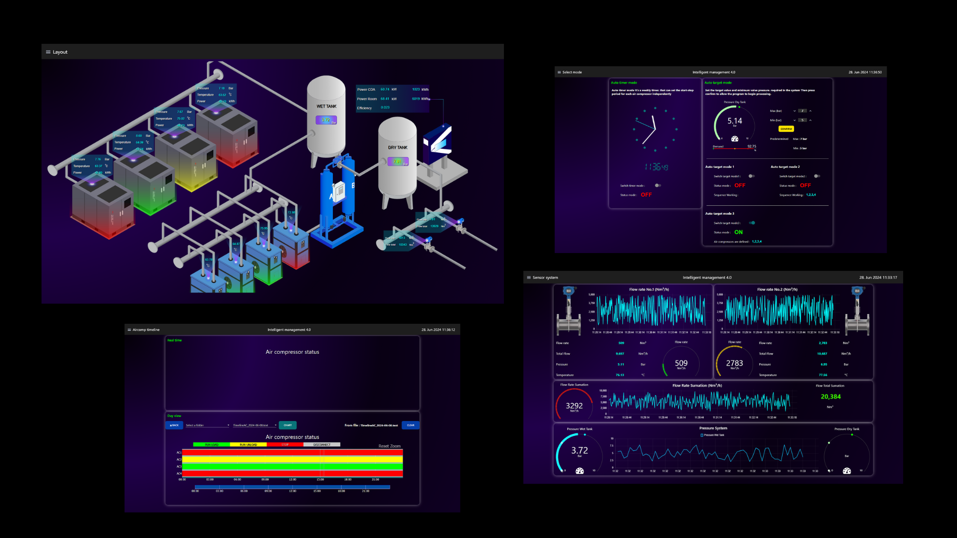 The primary goal of the Intelligent Management system is to optimize the compressed air production process, ensuring efficient use of electrical energy. It achieves this by selecting the most suitable air compressor to meet the current air demand and turning off compressors that are not needed.